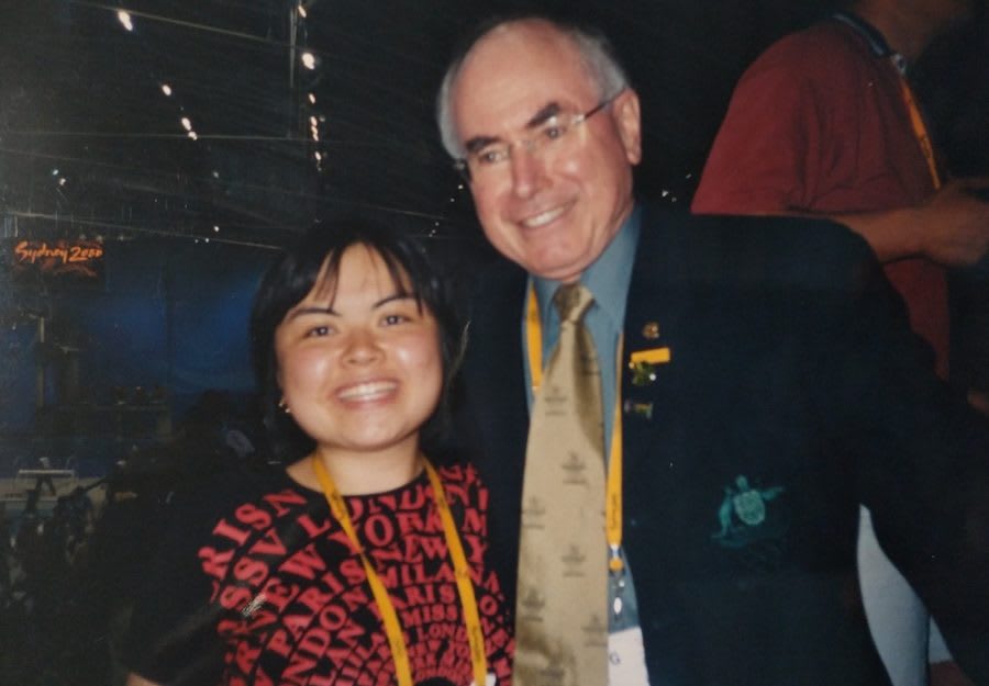 One afternoon at the International Aquatic Centre I spotted our then Prime Minister standing a few metres away. Howard’s election had done little to assuage my fears during an anxious time because of the rise of anti-Asian rhetoric on the streets (‘go back to your own country’ etc), in politics and in the media. Despite all that, in a rush of euphoria after a thrilling afternoon at the pool I couldn’t resist the lure of asking him for a photo. Howard happily obliged and with one arm around my shoulder, he asked: