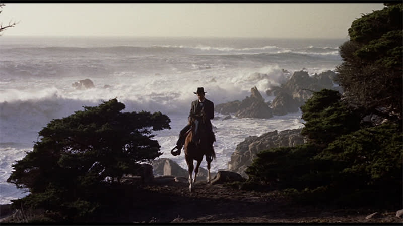 Neider’s major tweak to his Billy the Kid source material was geographic. He moved the action and the events from their actual historical context in New Mexico to Monterey, California. This would have a major effect on Brando’s film. Billy did his killing in New Mexico, where he was himself killed, and where (in Fort Sumner) his grave can be found. In Hendry Jones the location of the Kid’s grave is on the Monterey coast under a ghost tree ‘just beyond the natural bridge under which the tide roars in and out, on the Punta’s northern side, facing the old gaunt whitened rock rising out of the water like a great ship.’