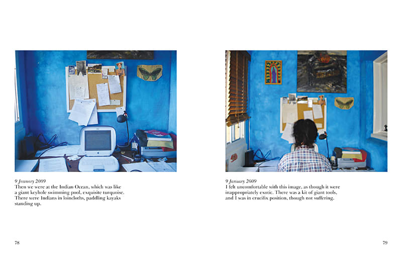 A Novel Idea is a photo essay that documents the process of writing the novel Indelible Ink under, to quote McGregor’s own description, ‘the rubric of endurance performance’. The photos are mostly of the back of McGregor’s head as she sits at a desk, writing. There is the odd detailed study of a view out the window, a close up of breakfast or a poster on the wall. The photos are taken by McGregor with little attention to quality or composition. The book is a reflection on both the process of writing and the practice of documentation. While the photo essay captures missed deadlines, periods of loneliness and painstakingly slow writing, McGregor successfully completes Indelible Ink. Most readers will know that she wins in the end, even if they are not familiar with the substance of the novel itself.